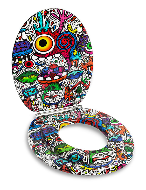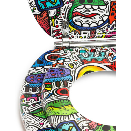 Entdecken Sie den Toilettensitz Crazy Maniac für Kinder - designt von dem talentierten Künstler Skwak, dessen Werke weltweit ausgestellt werden. Ein unentbehrliches Accessoire, um Ihre Kinder bei diesem wichtigen Schritt, dem Gang zur Toilette, zu unterstützen. Ein spielerisch bunter Kindersitz – entworfen als Kunstobjekt für Eltern und als lustige Erfahrung für Kinder, die von diesem Design bestimmt begeistert sofort sein werden.