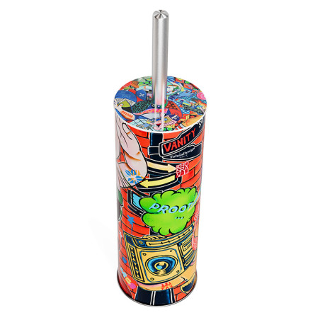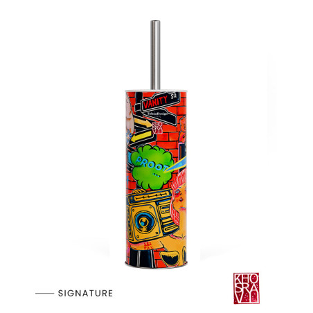 This colorful, unique bathroom brush transports us into the dynamic, pop universe of the talented Guive Khosravi. Its "Vanity Fair" design for TohaaDesign is an explosion of flamboyant hues and original graphics..