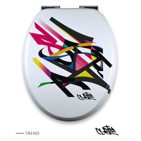 Cette lunette de WC chic et design signée Camilo Ortega F. donne une touche street art élégante à vos toilettes. Artiste Chilien émergent, Camilo Ortega F. alias Corte fait sortir le street art et réinvente le petit coin ! Avec "Saray03" pour TohaaDesign, du nom d'une ville turque de la région de Marmara, il intègre son art audacieux et coloré à votre quotidien.