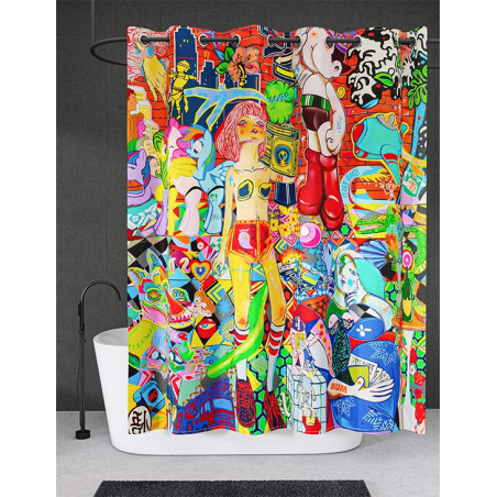 Signé par l’artiste contemporain Guive Khosravi, ce rideau de douche "Vanity Fair " illuminera votre salle de bains. Ses couleurs chatoyantes et ses formes dynamiques lui confèrent un style unique, d’inspiration Pop-Art.
