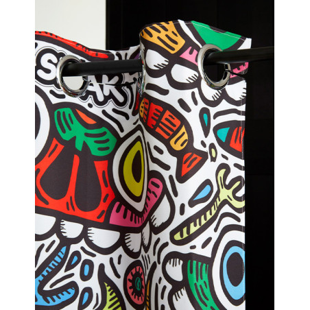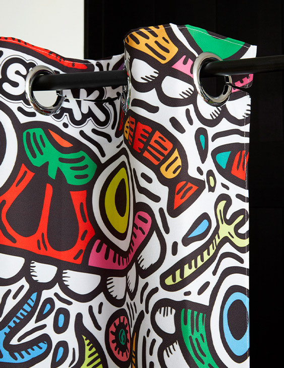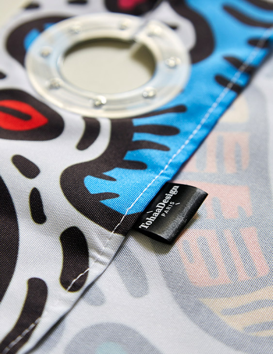 Réalisé exclusivement pour TohaaDesign, ce rideau de douche "Maniac Party" au design mouvementé et haut en couleurs est signé SKWAK, artiste français à l’univers foisonnant. Griffé par l’artiste, ce modèle est une pièce rare, qui distinguera votre salle de bains à coup sûr.