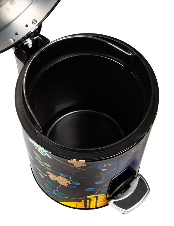 Maison Christian Lacroix has teamed up with TohaaDesign to bring you a unique bathroom wastebasket. This emblematic design by the prestigious Maison Lacroix "Birds Sinfonia", with its intense black background, comes to life with a swarm of birds in shimmering plumage tracing the musical staves of their own song.