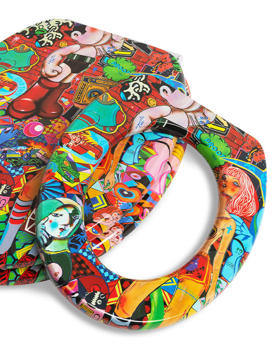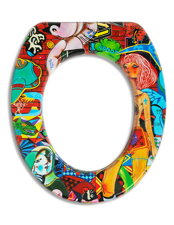 Discover the Vanity Fair children's reducer designed by French artist Guive Khosravi, a must-have accessory to accompany your little ones during this important stage of going to the toilet. With its pop-art style and cartoon characters, it will immediately appeal to your child. This playful reducer is designed to be both a design object for parents and a fun experience for children.